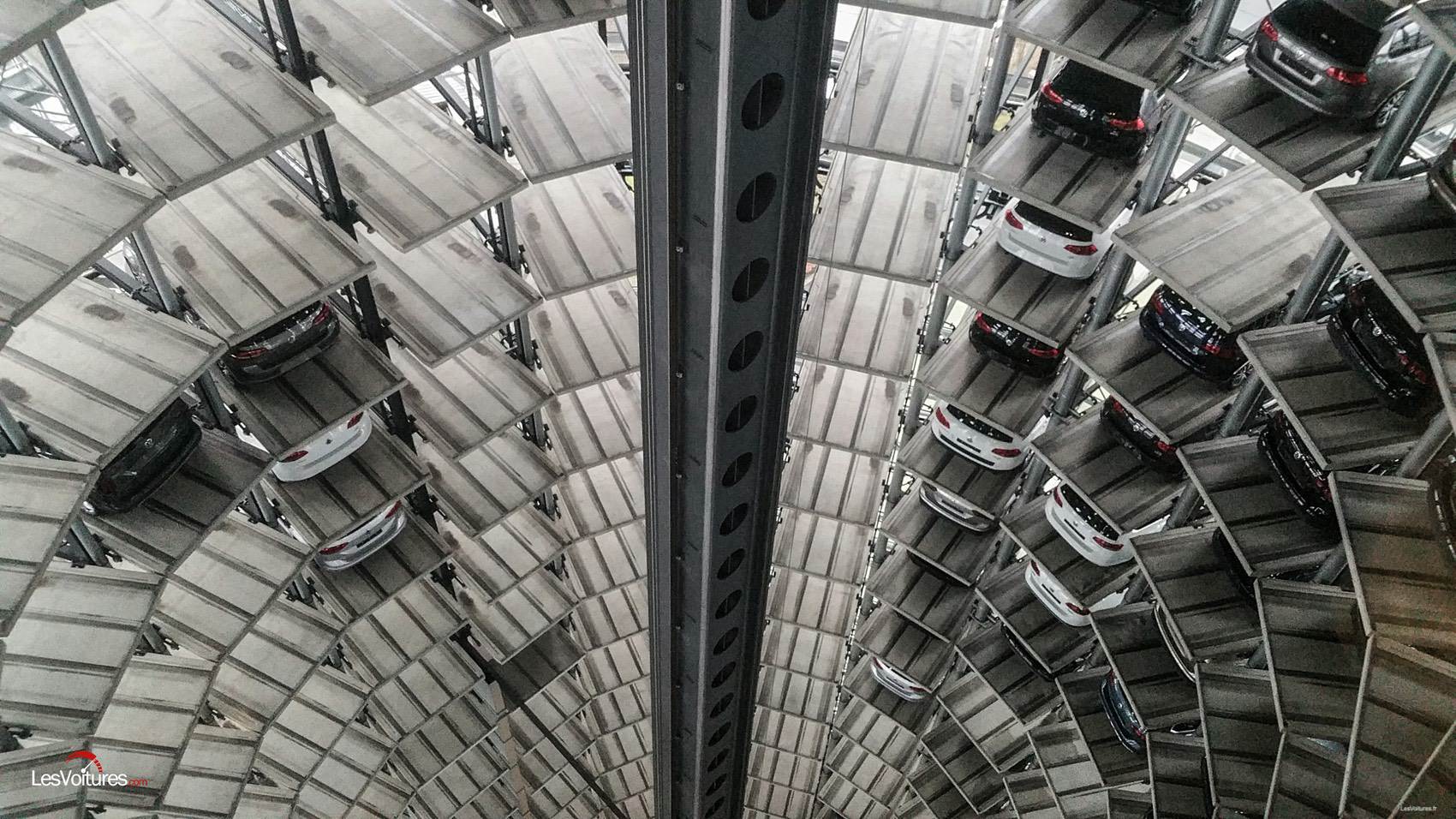 Ce qui marque lorsque l’on visite ce lieu, ce sont les 2 tours géantes de verre qui abritent chacune 400 voitures. Loin d’être là pour l’apparat, elles servent en réalité de lieu de stockage des véhicules produits juste derrière, à l’usine et en attente de livraison à leurs propriétaires. Quoi de plus agréable en effet que de venir chercher soi-même, à l’usine, sa voiture flambant neuve? Par ce procédé, Volkswagen fait entrer une sorte de nouveau membre dans la famille. A votre arrivée, et ce de façon entièrement automatisée, un bras vient chercher, dans la tour, votre voiture afin que vous puissiez vous familiariser avec en présence d’un commercial et sur un parcours privé. A raison de 800 véhicules/jour, ce sont presque 2,5 millions de véhicules qui ont été livrés de la sorte depuis l’ouverture du site. Si venir chercher son véhicule sur place, c’est bien, rien ne vaut alors de visiter le lieu où il a été fabriqué.