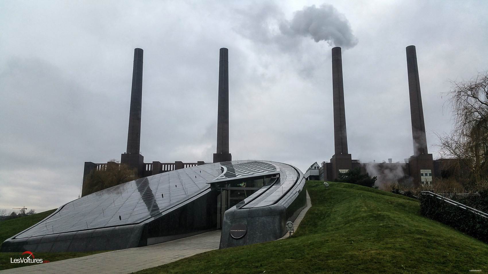 Dans le monde, peu de bâtiments industriels liés à l’automobile sont autant ancrés dans les consciences collectives. S’il vient tout de suite à l’esprit le porche logoté « Ferrari » au-dessus de l’ancienne sortie de l’usine de Maranello, l’usine Volkswagen de Wolfsburg a cette particularité qu’elle est, typiquement, une usine. Pour les fans du film Charlie et la chocolaterie, l’imaginaire la ferait se confondre avec celle de Willy Wonka; 4 grosses cheminées visibles à des kilomètres surplombent un ensemble extrêmement massif auréolé d’un logo VW géant.