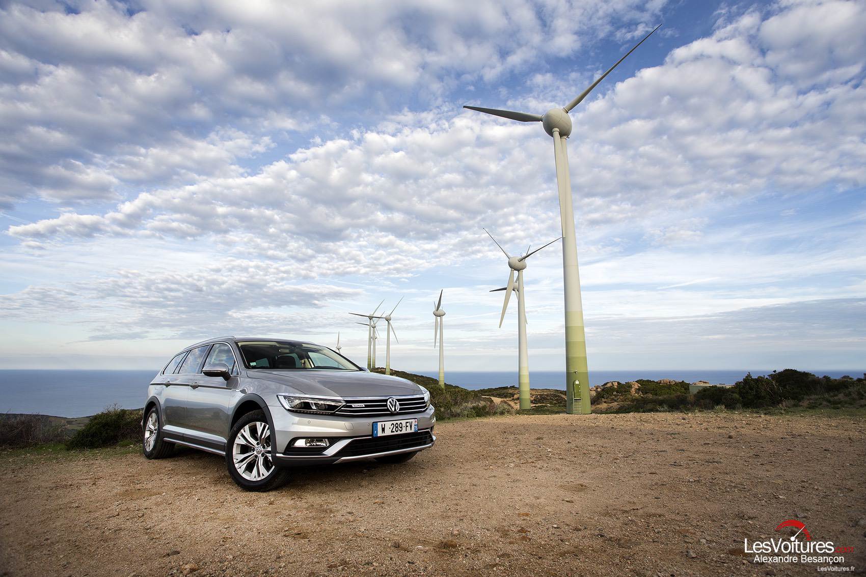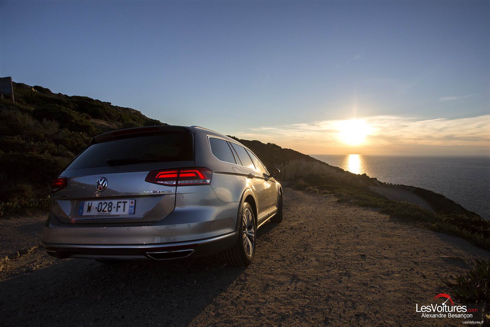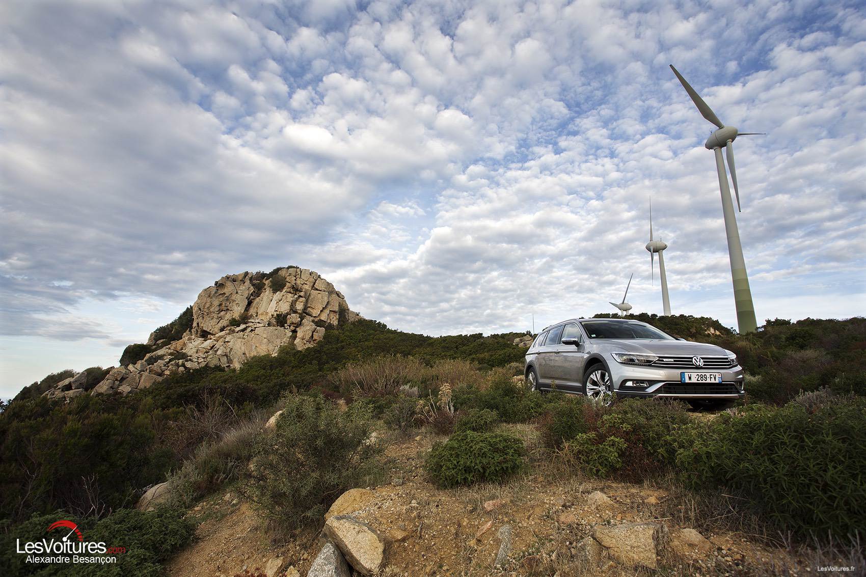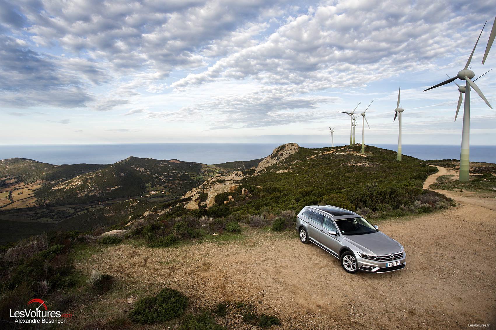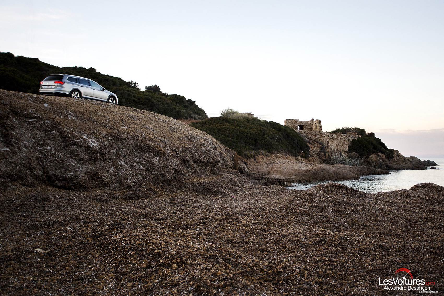 Commençons par celle qui nous permettra d’explorer les recoins les plus secrets de l’Ile de Beauté, la Passat Alltrack. La recette est simple et inspirée des cousines Audi Allroad. Prenez un break familial, ajoutez la transmission intégrale 4Motion, surélevez-le de 27,5 mm et dotez-le des derniers raffinements en termes d’électronique « offroad » et enrobez-le tout avec de nouveaux habillages afin d’associer le plumage au ramage et vous obtenez une Passat Alltrack.