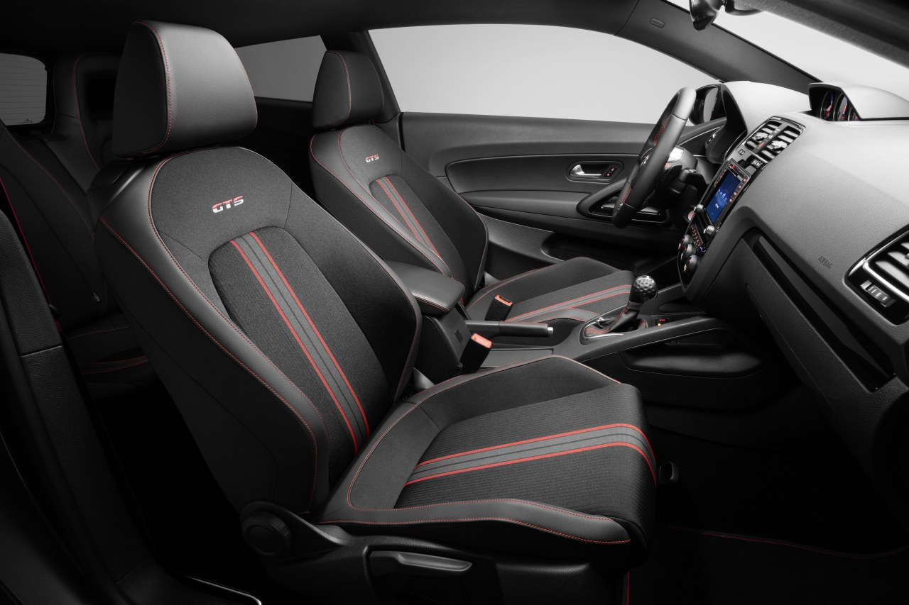 Connue en France en série limitée il y à quelques années, le nouveau Scirocco GTS cru 2015 permet à Volkswagen de proposer un modèle puissant équivalent en gamme à la Golf GTI mais sans porter ces 3 lettres sportives. Esthétiquement, le coupé GTS se distingue des autres modèles par ses freins à étriers rouges et ses jantes de 18″. A l’intérieur une sellerie spécifique noire et rouge fait le lien avec le style de la Golf GTI.