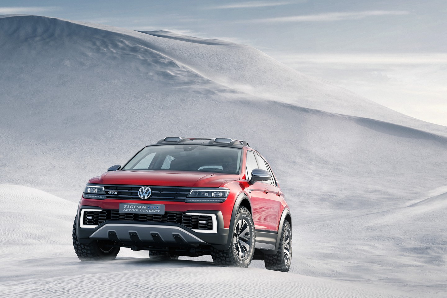 Après la présentation de la deuxième version du Tiguan à Francfort dans sa configuration GTE, il était temps de revenir sur le sujet de l’hybride avec un outil en cours d’adaptation au marché américain. Entendons par là, qu’il ne fallait pas se priver de faire les choses en grand avec un vrai baroudeur sans restriction au niveau du design et de la performance. A ce jour, la marque allemande doit se refaire une image, le North American International Auto Show 2016 (du 11 au 24 janvier) pouvait donc se préparer à recevoir le Tiguan GTE Active Concept avec son look à l’agressivité sans précédent.