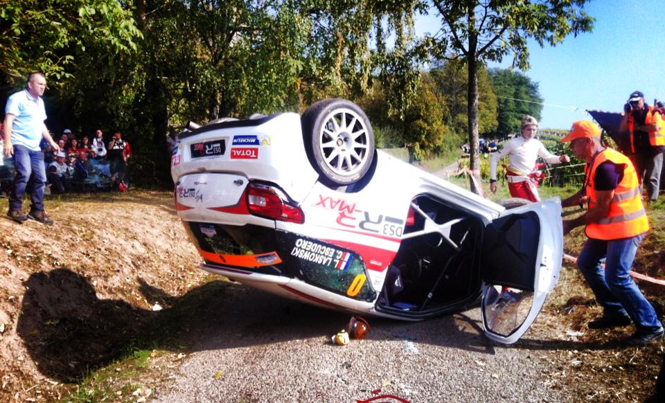 Au total Sébastien Ogier a perdu plus de 8 minutes. L’Alsace ne réussit vraiment plus aux pilotes français. Souvenez-vous du dernier rallye WRC de la carrière de Sébastien Loeb en 2013. Il s’était terminé sur le toit. Mais le lendemain, le champion du monde en titre a retrouvé de la motivation et a remporté l’ES12 avant de réaliser le meilleur temps d’une ES13 (Pays Welche – Riquewihr) « très spéciale ». En effet, nous étions sur place et nous avons assisté aux tonneaux de la dernière voiture ouvreuse #0, pilotée par Laurent Laskowski. Arrivant juste derrière sans être prévenu, Ogier a dû déployer tout son talent pour éviter la Citroën DS3 MAX alors déplacée sur le bas-côté de la piste par le public. Le malheureux Laurent Laskowski pourra se consoler en ayant terminé son rallye sur le toit et au volant d’une DS3, comme Loeb en 2013…