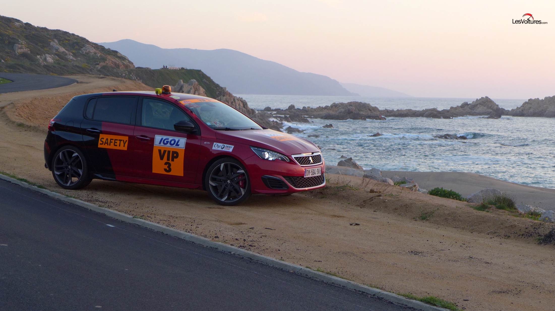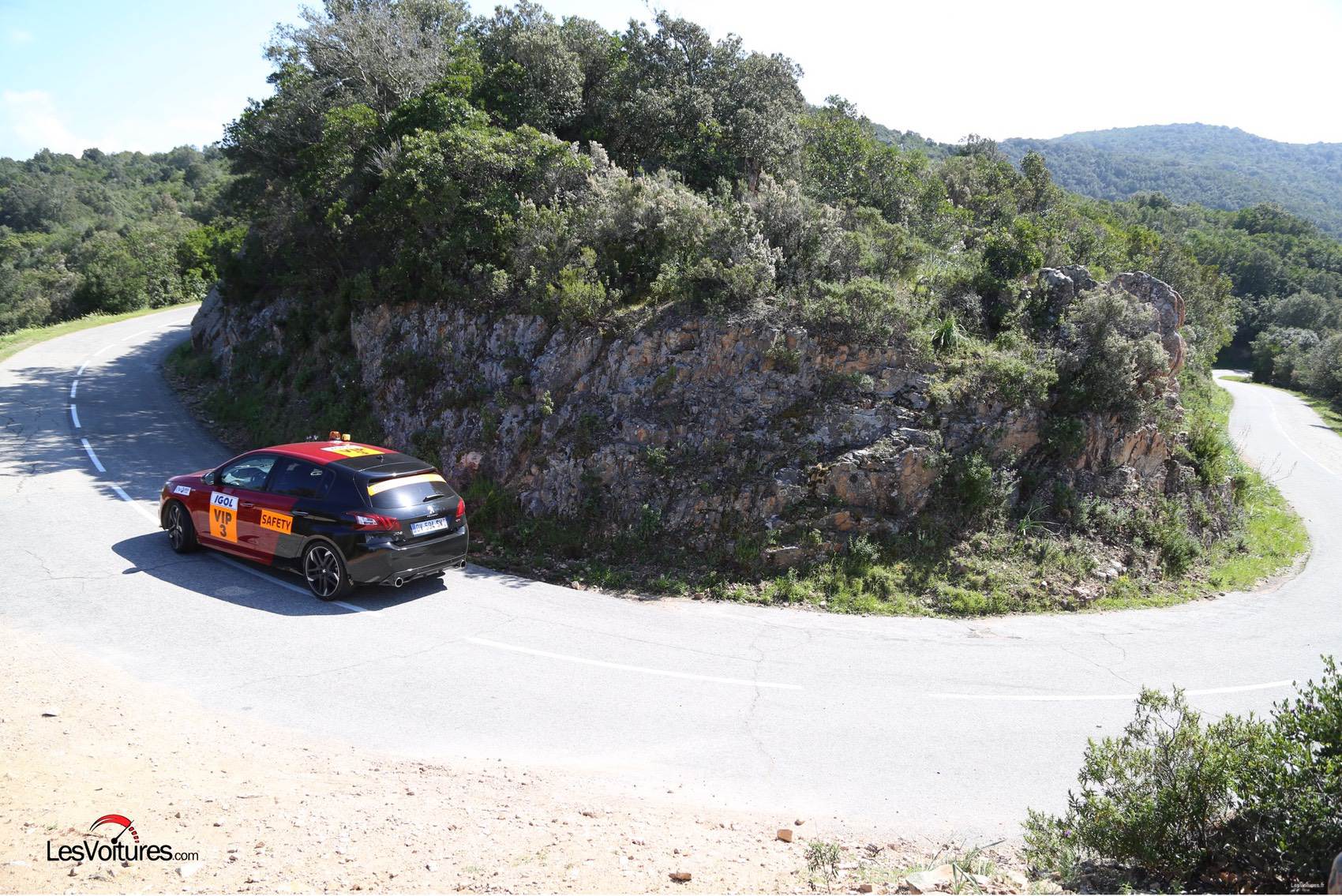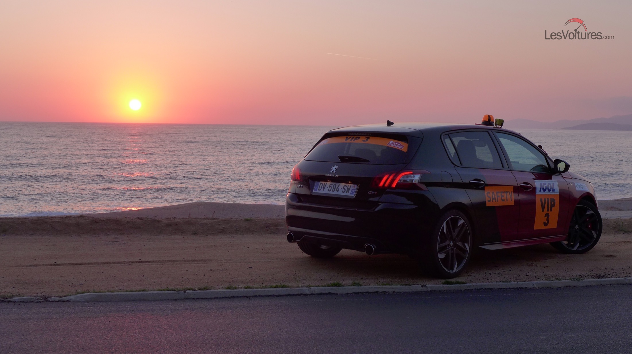 Entre les murets, les rétrécissement en courbe, les épingles et autres virages très serrés, sans oublier les ravins, la 308 GTi, forte de 270 ch (1,6L THP), ne s’est accordée aucune pause durant ces repérages. A la tombée de la nuit, c’est à quelques centaines de mètres du départ de la Spéciale qu’elle a finalement profité d’une vue imprenable sur la Méditerranée.