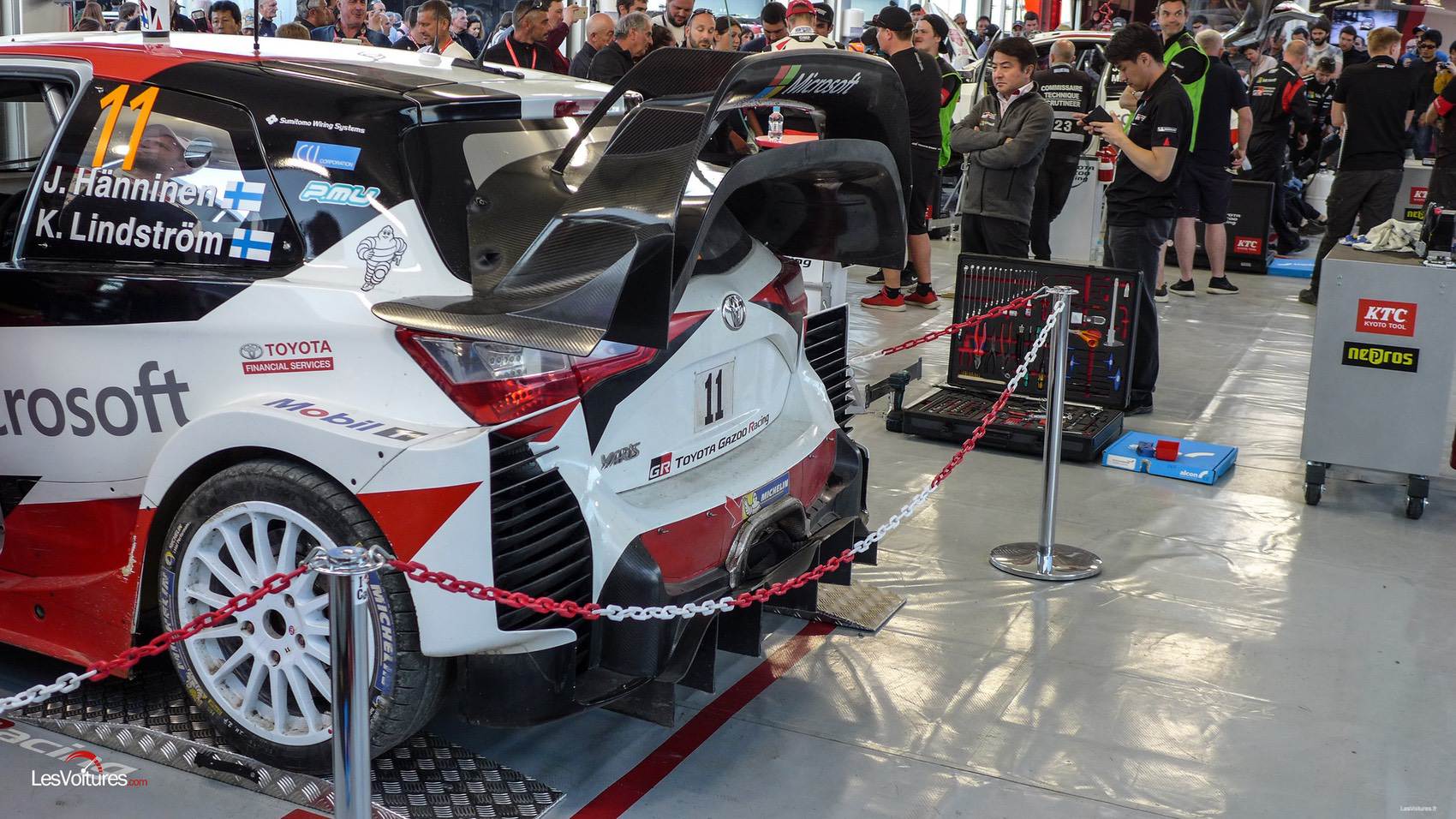 Après cette visite, nous observons la rapidité avec laquelle la Yaris d’Hänninen a été remise en état. Chaque mécanicien s’attelle à sa tâche avec calme et précision. Rien ne semble affecter leur moral et sans pression la voiture est remise rapidement en état. Ouvrons de nouveau une parenthèse réglementaire. En WRC, le temps des interventions sur les voitures est compté : 10 minutes le matin, 30 minutes toutes les 2 Spéciales et 45 minutes le soir. Et comme vous allez pouvoir le constater, on en fait des choses en 30 minutes…